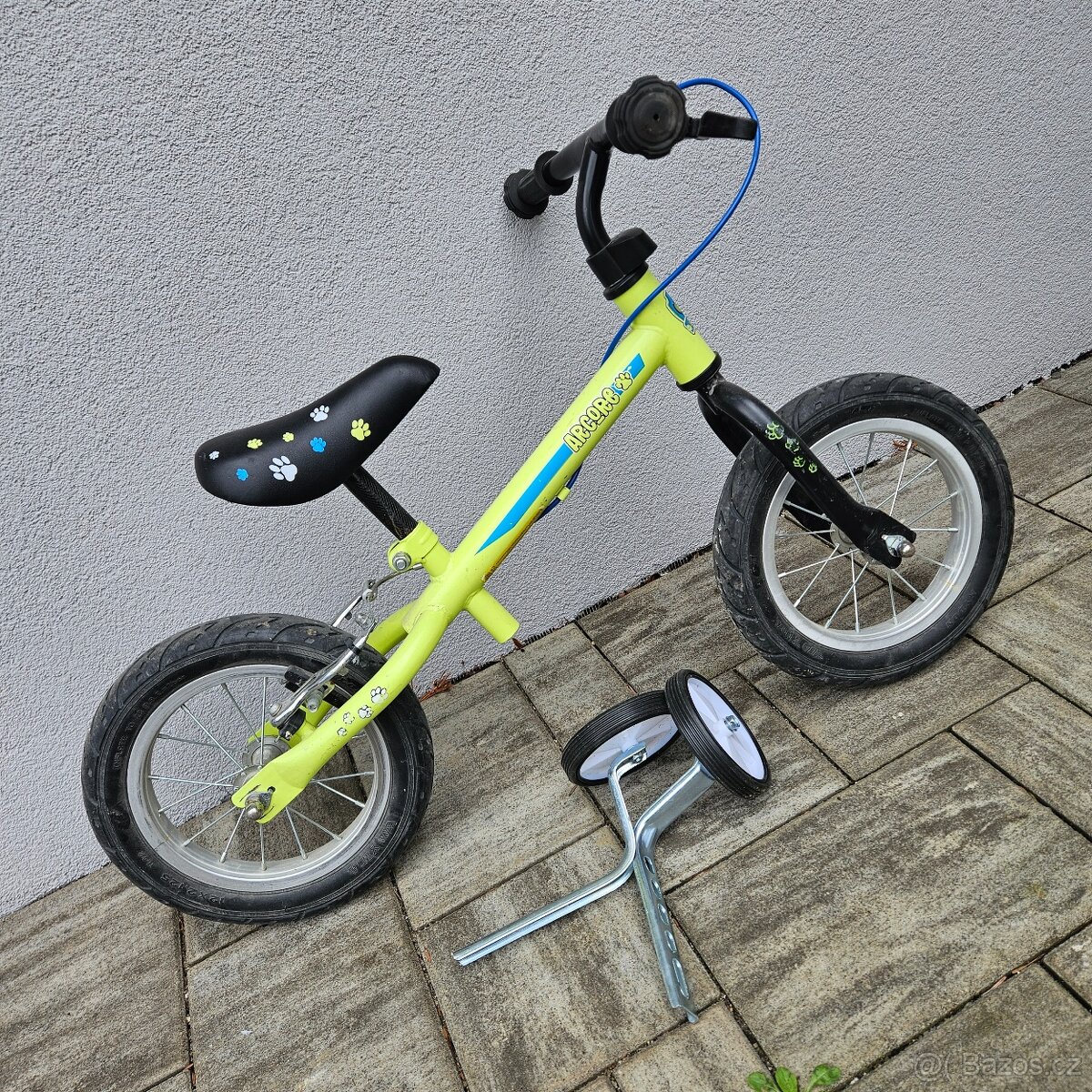 Používané, ale pořád pěkný stav. Menší škrábance. Je potřeba si seštelovat brzdu. Přidám pomocné kolečka, jako nové