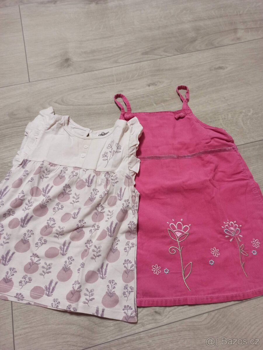 Prodám dívčí šaty vel. 98 (světlé) a vel. 110 (růžové manšestrové) , bez vad