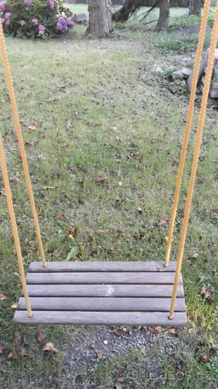 Dětská dřevěná houpačka. Nepoškozená a v perfektním stavu. Houpačka natřená impregnací. Včetně dvou zapínacích karabin.