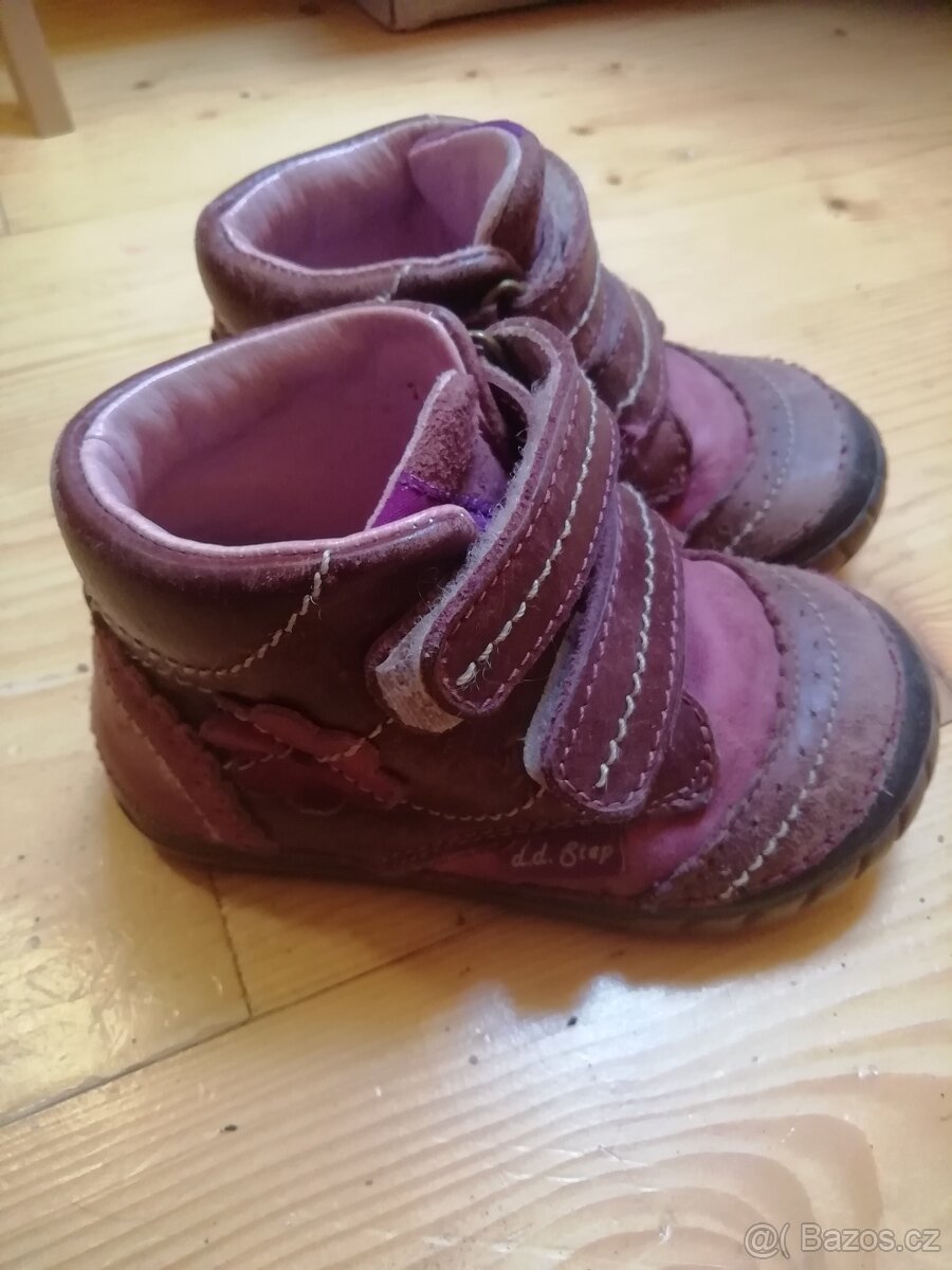 Prodám celoroční kožené boty DD step velikost 21, po jednom dítěti. V dobrém stavu.