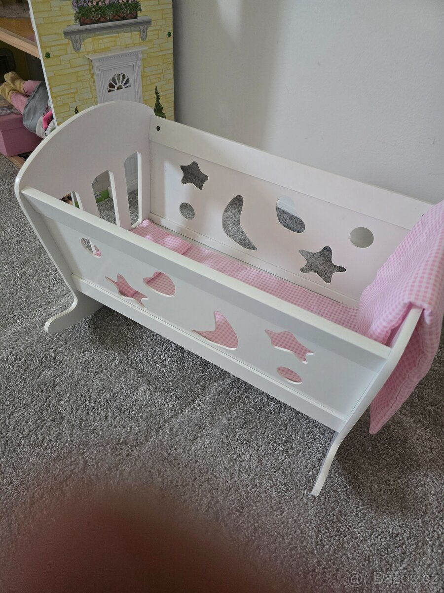Dřevěná kolébka, postýlka pro panenky s vybavením Legler - [16.4. 2026]Prodám bílou dřevěnou kolébku pro panenky zn. Small foot by Legler. Je minimálně hraná, přesto má pár prasklinek, které ale nemají vliv na funkčnost, viz foto. Cena je včetně vybavení: mantinelu, srdíček, polštářku a peřinky. Rozměry 50x28x31 cm.