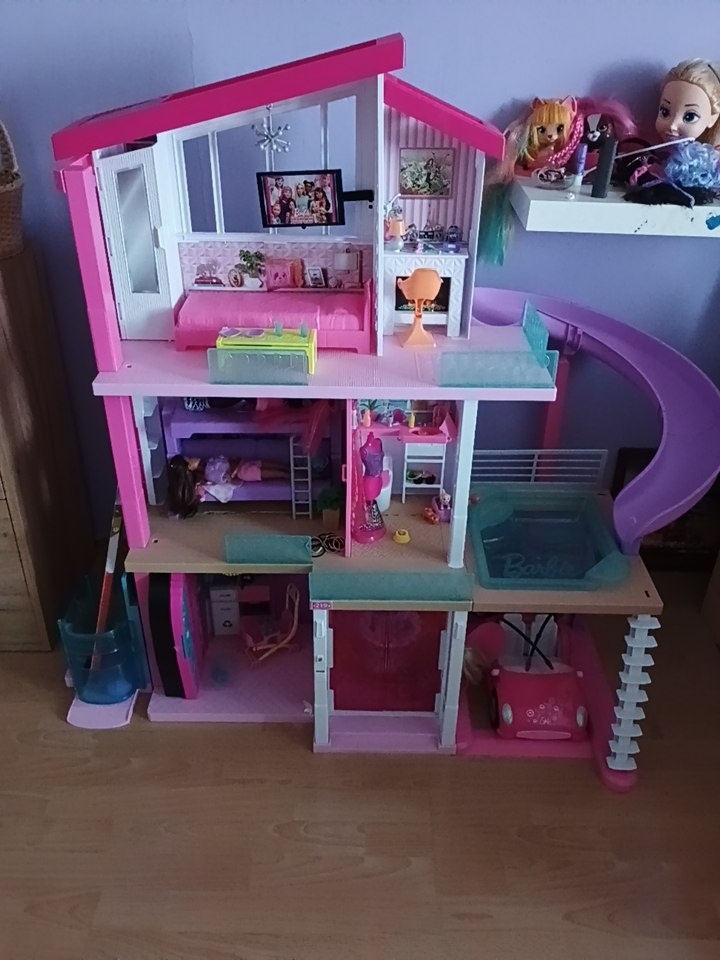 MATTEL BARBIE DŮM - [29.3. 2026]Prodám použitý Barbie dům snů se skluzavkou a s výtahem. Vybavení viz. foto.