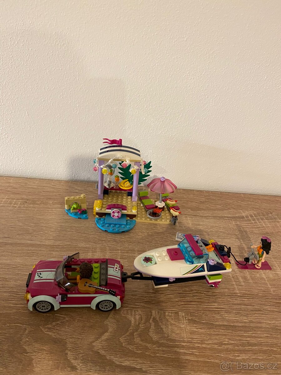 Lego friends 41316 - Andrein vůz s přívěsem pro člun. Obsahuje všechny dílky (až na jednu hnědou kostičku), návod, bez originální krabice.
