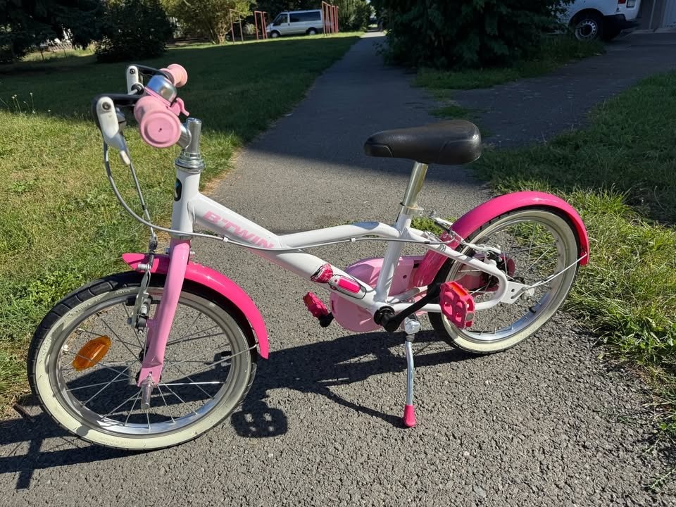 Btwin (Decathlon) 16palcové dětské kolo řady „500“ – konkrétně varianta Docto Girl. Je určeno pro děti ve věku přibližně 4,5 až 6 let a výškový rozměr dítěte od 105 do 120 cm