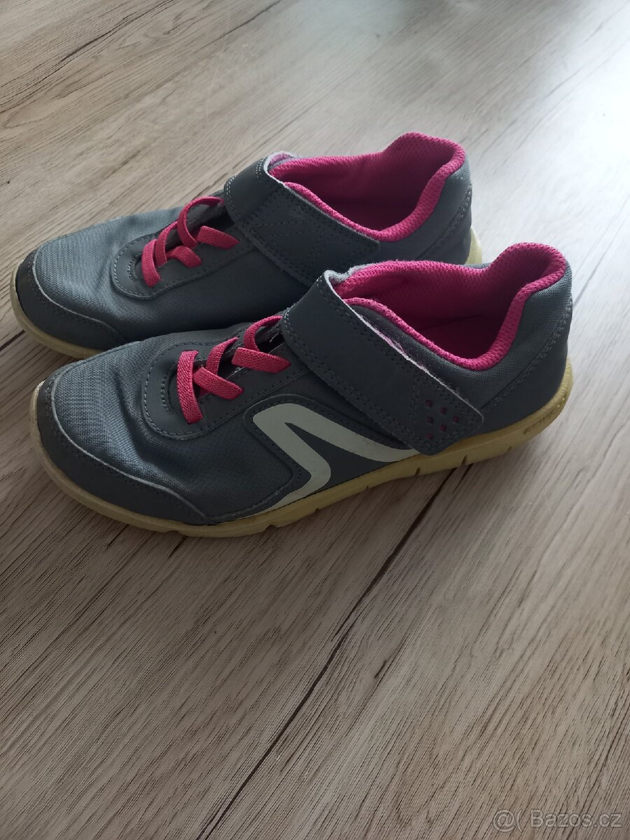 Tenisky Decathlon vel. 37 - [24.4. 2026]Tenisky uvedená velikost 37, vnitřní stélja 23,5 cm. Užívané na tělocvik ve škole, bez vady.