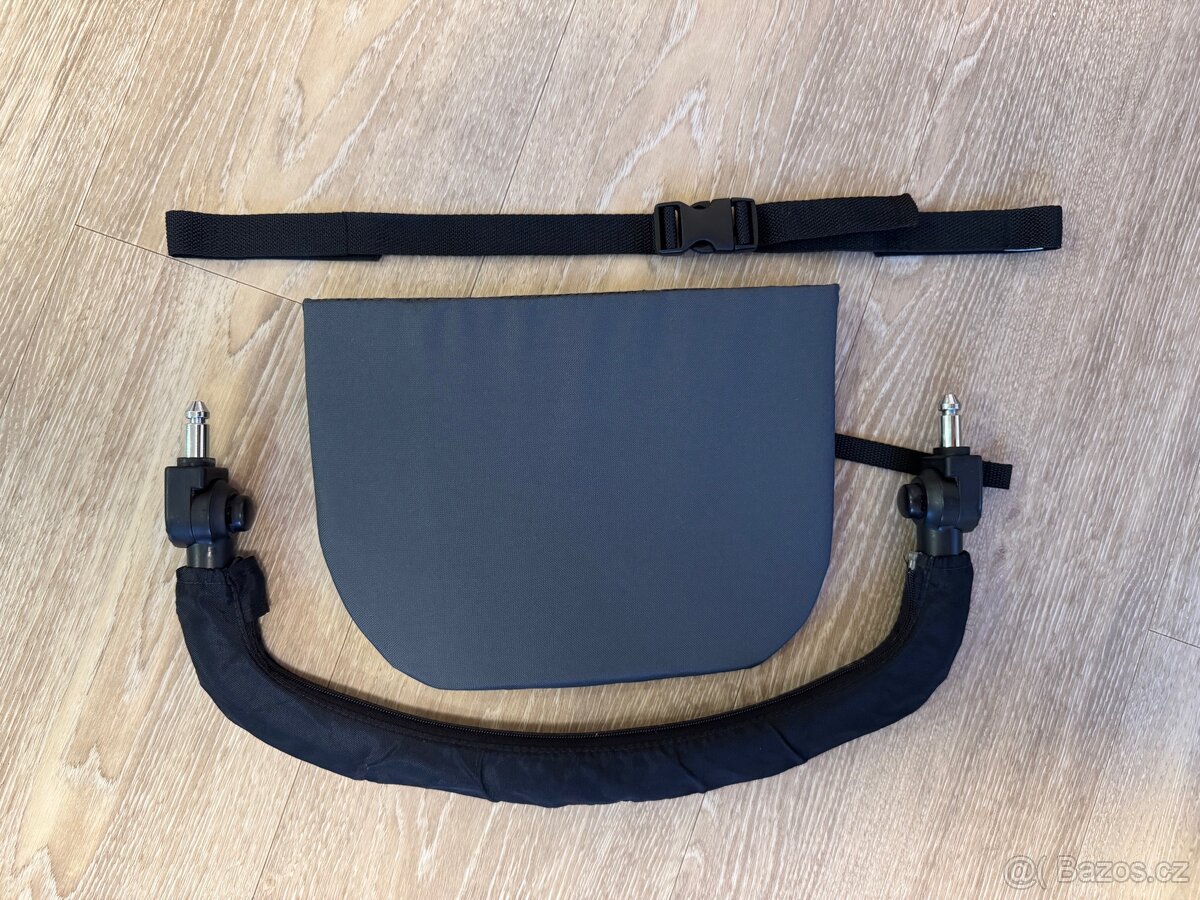 Nabízím pásek pro úplný sed od sufik.cz - použity asi 2x, přídavné polohování nožiček v tmavě šedé barvě - nové, nakonec nevyužité. Nechávala jsem si ho šít a nevyužila. Šité je pro kočárky Baby Jogger, ale myslím, že by mohlo sedět i na jiné značky. Případné mohu přeměřit. Pro představu vyfoceno na Baby Jogger summit. Madlo prodané, není tedy součástí prodeje