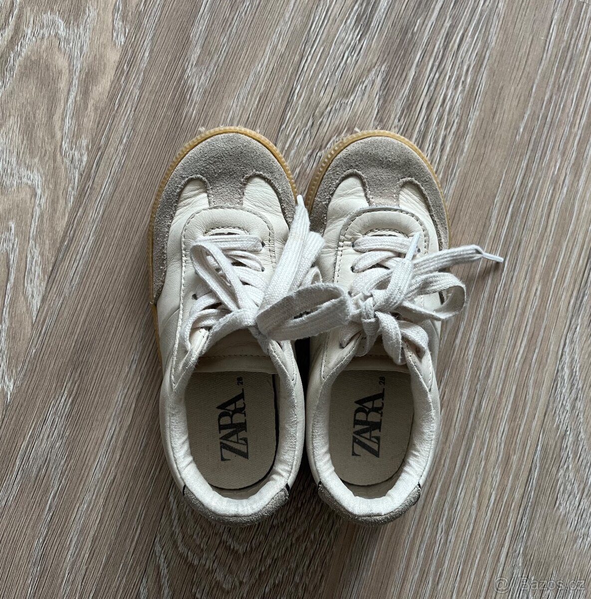 Přidám smetanove kožené tenisky ZARA velikosti 28 po jednom chlapečkovi, téměř nenosene. Mají měkkou, ohebnou podrazku, celkové jsou pohodlné.