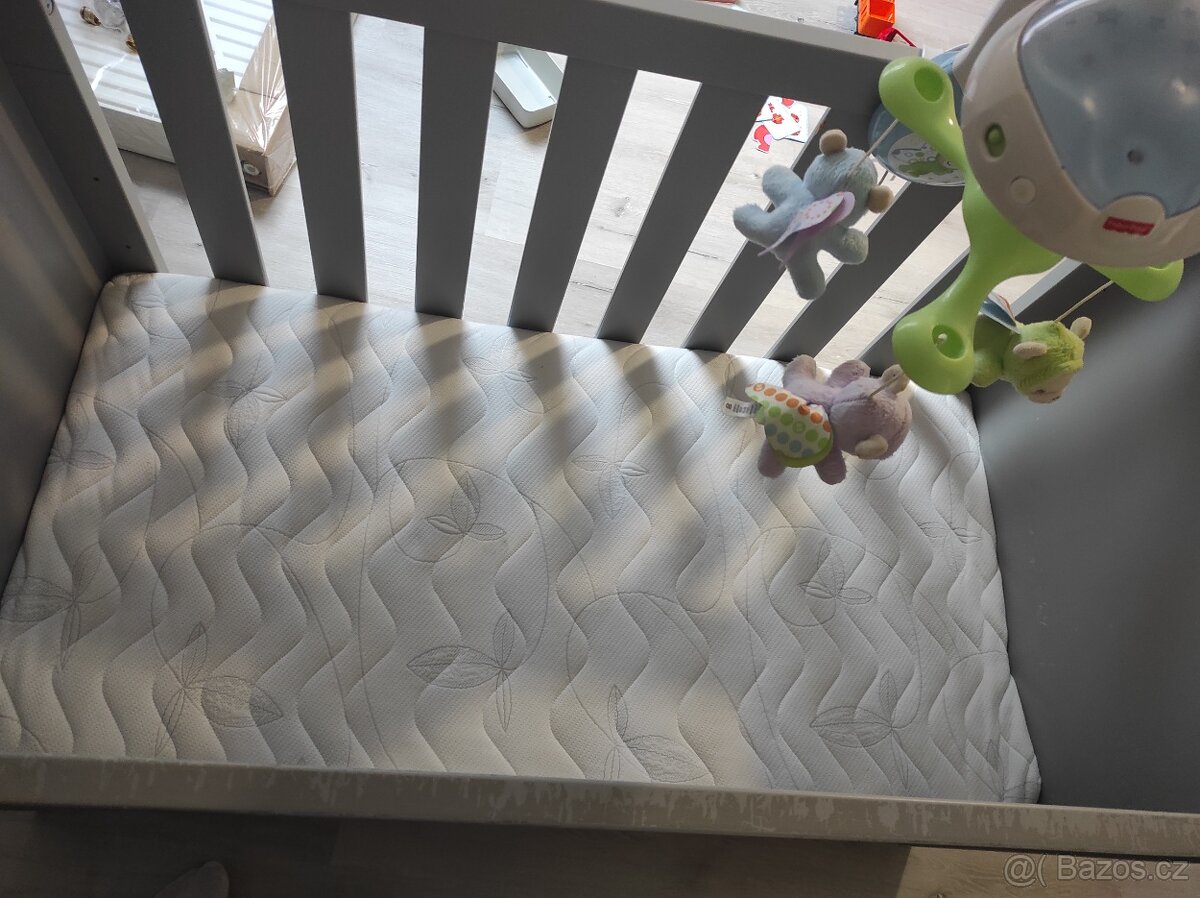 Postýlka 60x120 i s kolotočem a matrací s kokosovým vláknem,možno prodat i bez matrace .stav postýlky viz.foto