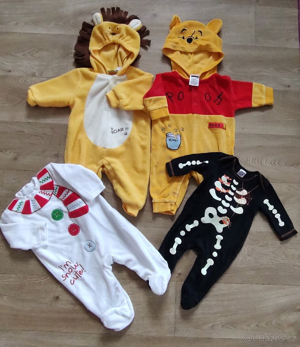 Bílý a černý ve velikosti 0 až 3 měsíce. Žluté 3 až 6 měsíců. Nové bez visačky