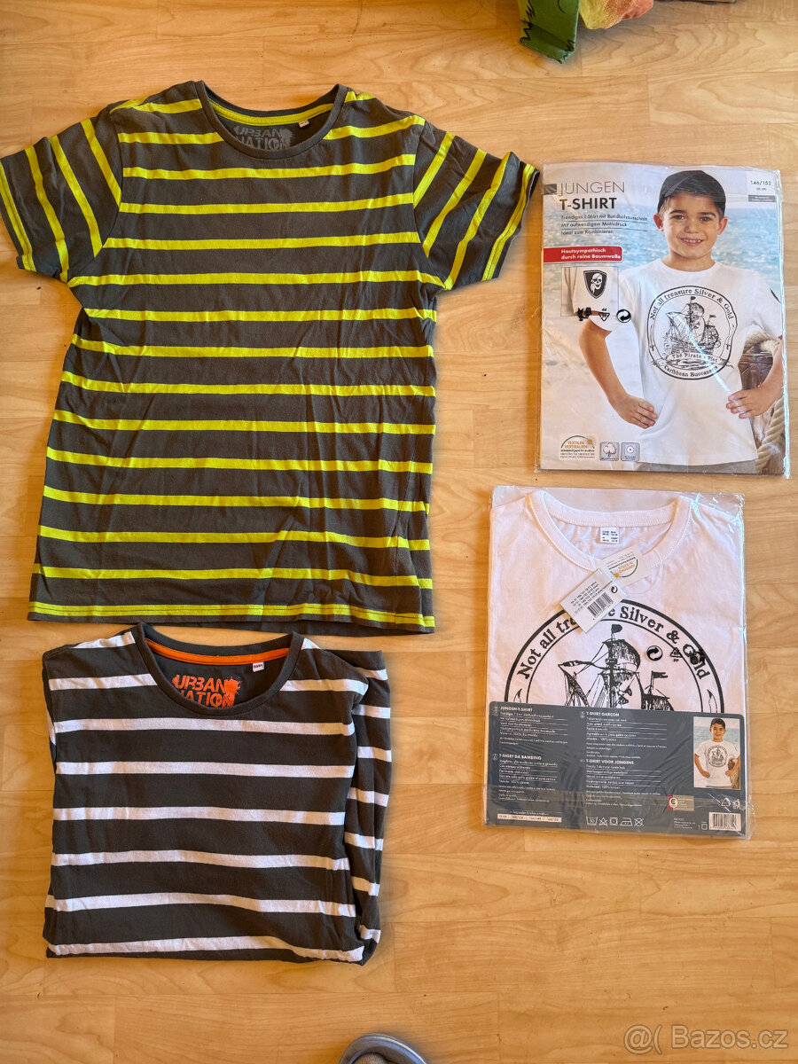 2x trika Urban nation bavlna 158-164 délka 62 cm, šířka 42 cm, CENA 60Kč/kus,,, 2x NOVA pirátská trika 146-152 délka 56 cm, šířka 40 cm CENA 100Kč/kus