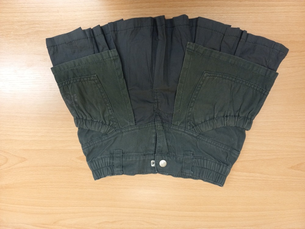 Pas možno stáhnout páskem, áčkový střih, zapínání na zip + knoflík, 2 kapsy