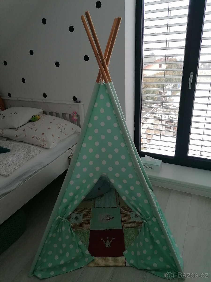 Prodám dětské teepee barva mint,nepoškozené.Cena 600kč.