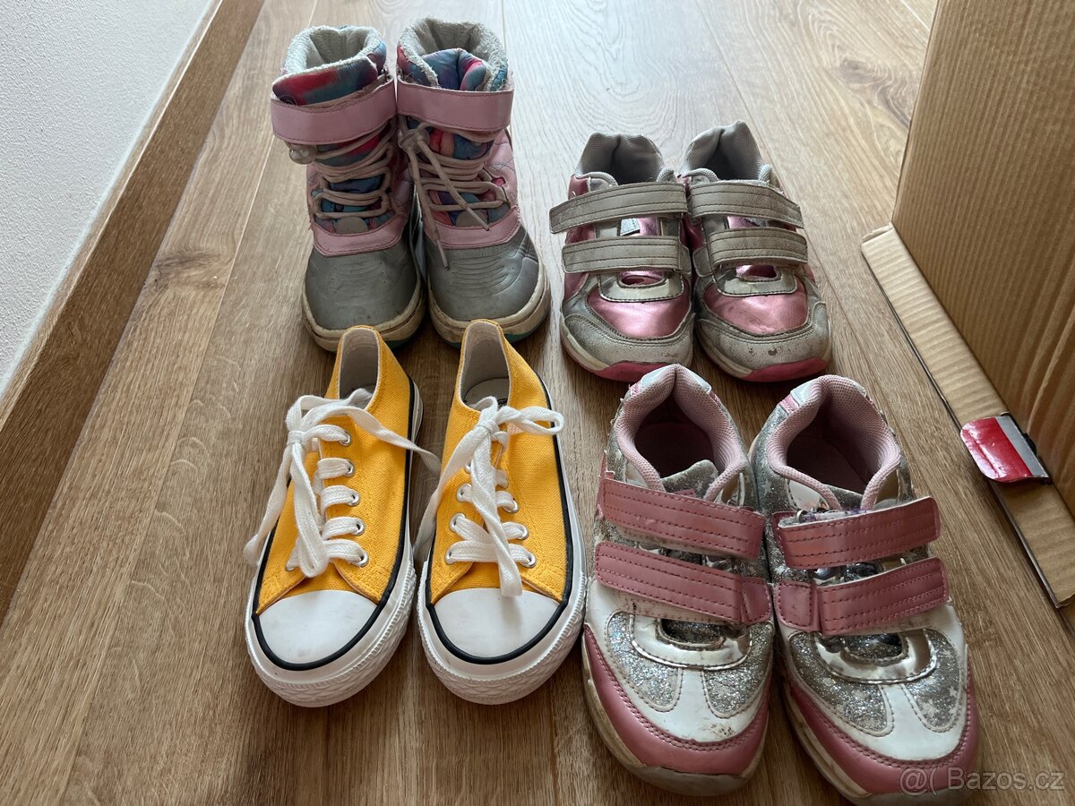 Vše z Lidlu. Jsou špinavé kromě těch žlutých (ty byly jen jednou použité v tělocvičně). Nemám kapacitu je čistit a rozhodně budou vypadat ještě lépe. Zašpiněni je zohledněno v ceně. Stav podrážek viz fotografie.