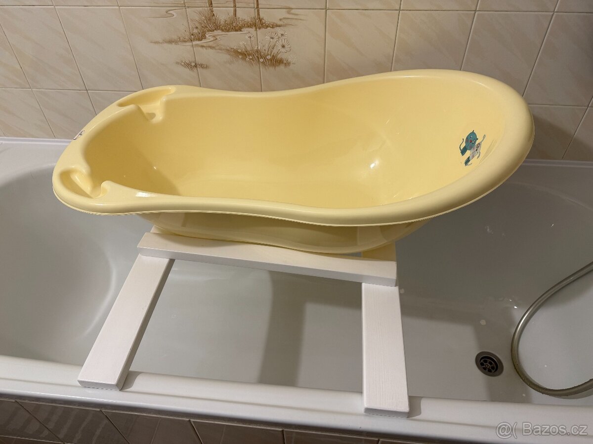 KOUPACÍ VANIČKA Bébé-Jou se stojanem - [9.4. 2026]Konstrukce vhodná i na koupací kyblík. Odtokový špunt s integrovaným teploměrem. Já používala s molitanovou podložkou, tu neprodávám. Jediná vada na kráse - trochu popraskané, ale neprotíká nikde, je to tam, kde je větší část plastu (viz obrázek zesp ...