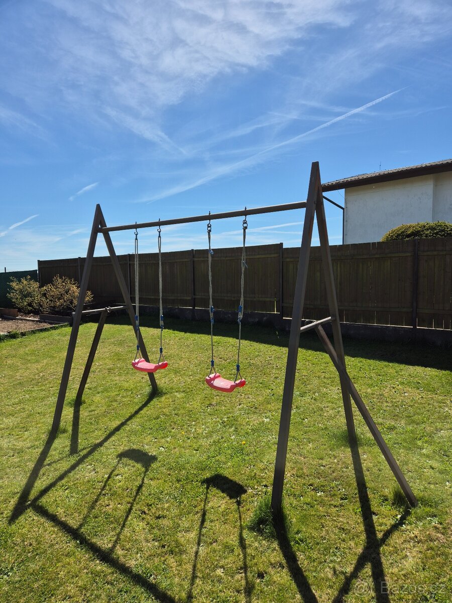Prodam po domacku vyrobenou kovovou houpackovou konstrukci i s houpackami.
