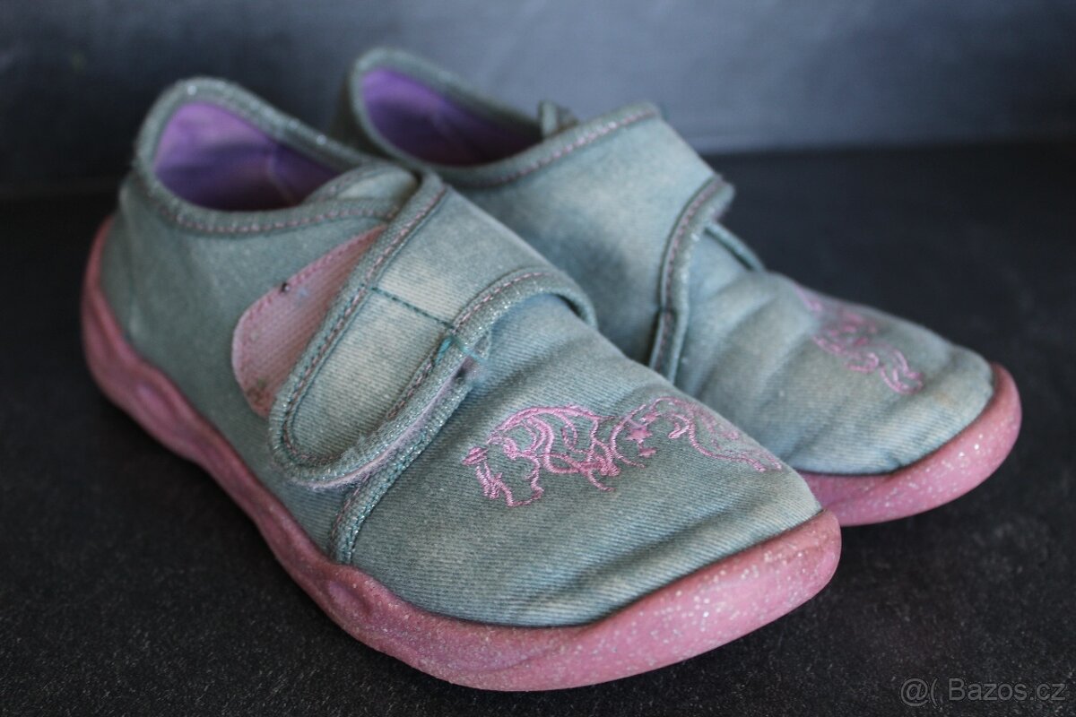 +++ Bačkory / cvičky vel.33 - levně prodám +++ - [21.4. 2026]Velmi levně nabízím dětské bačkůrky s protiskluzovou gumovou podrážkou využitelné též jako cvičky vel.33. Délka vnitřní stélky je 21cm. Bezvadný stav.