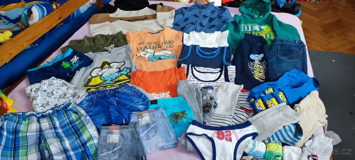 Prodám oblečení po synovi vel. 122/128, cena za vše. Úklid skříně, obsahuje 4 mikiny, tepláky, džíny, 3x kraťasy, trička, 5x punčochy (z toho 1x termo punčochy), plavky, trenky, ponožky. Některé oblečení je jako nové, některé oprané.