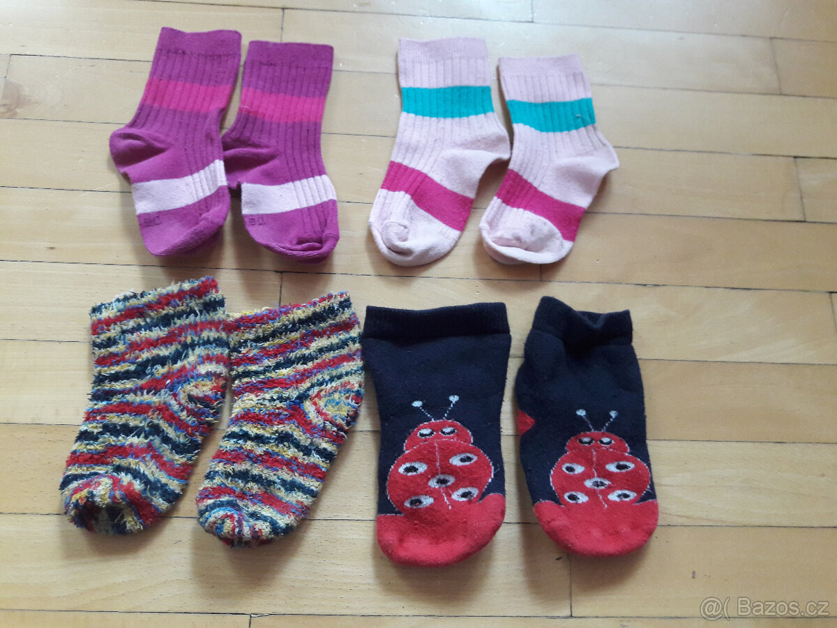Nabízím dětské ponožky pro věk asi 2 roky. Cena za pár (kromě falušových a semišových - s beruškou ponožek) je 10 Kč. Flaušové a semišové ponožky (s beruškou) - cena za pár/20 Kč. Možnost zaslání poštou dle ceníku České pošty nebo (lépe) osobní odběr.