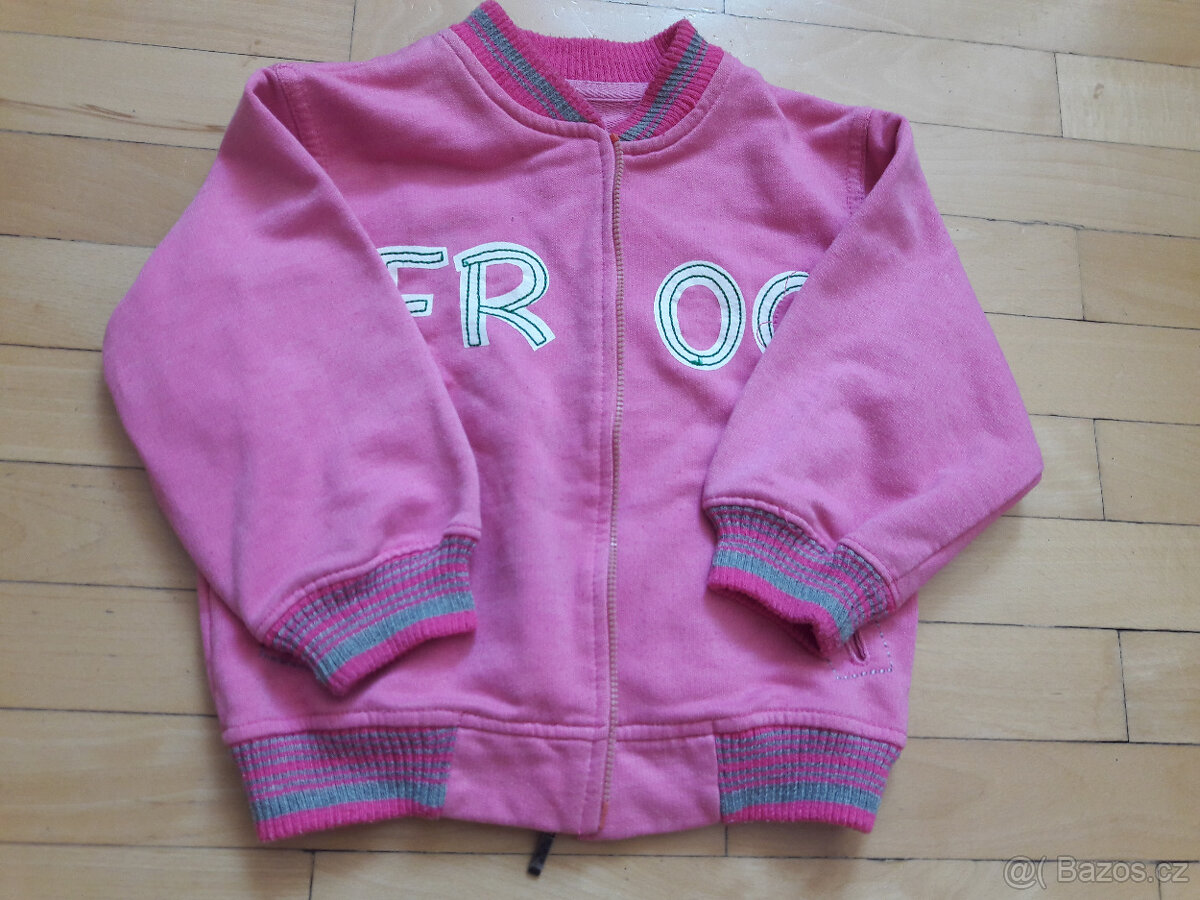 Nabízím růžovou dětskou mikinu velikosti 98/104 značky Frog. Délka mikiny je 36,5cm, délka rukávu je 26,5cm. V přední části mikiny jsou kapsy, mikina má rozepínání na zip. Možnost zaslání poštou dle ceníku České pošty nebo (lépe) osobní odběr.