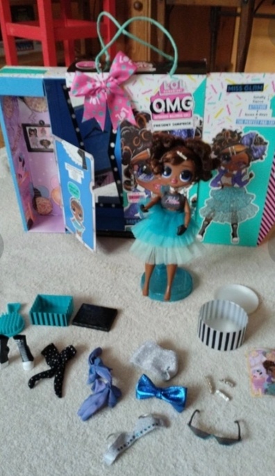Hrané málo. Panenka i doplňky ve velmi dobrém stavu. Krabice místy odřená, nahoře lepená. Chybí kabelka.