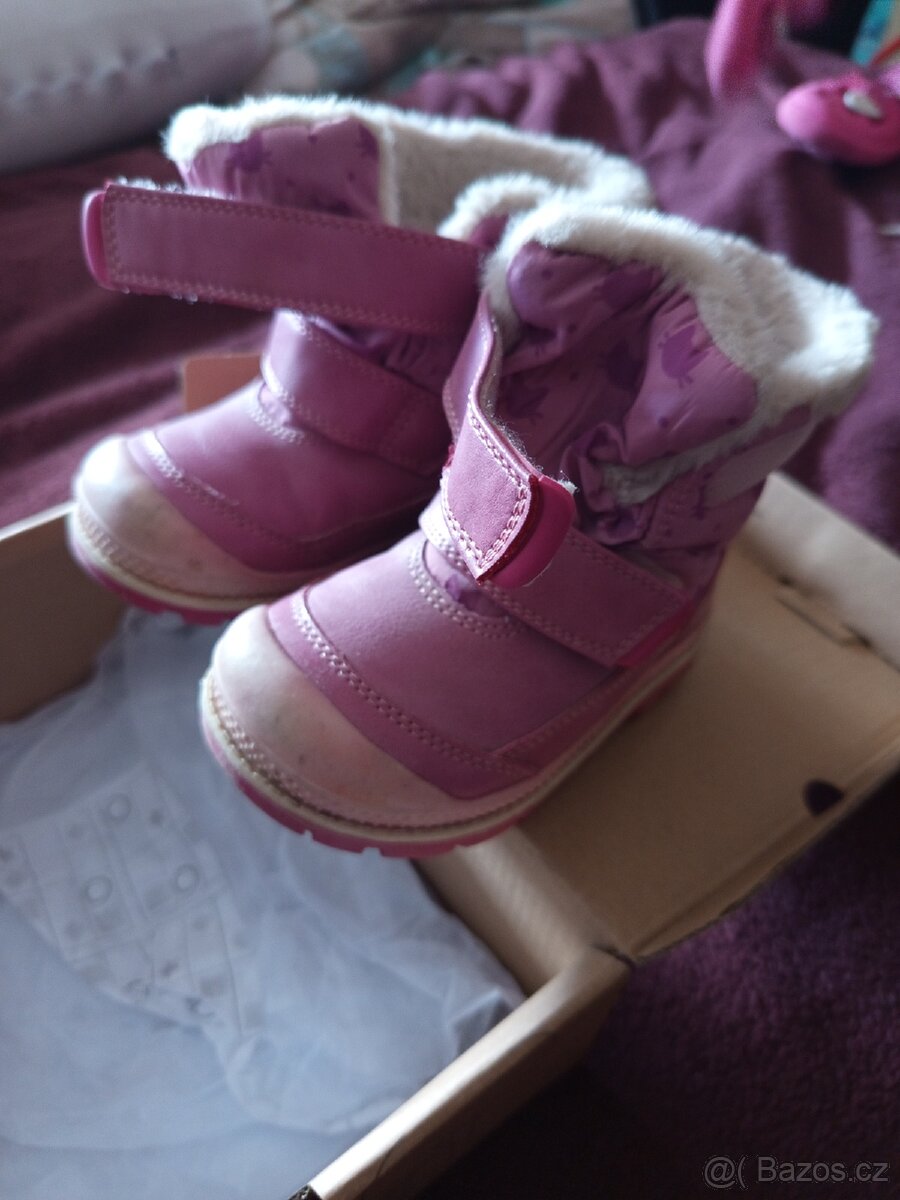 Zimní boty Pegres 1702 vel. 26, 27, 28, 29 - [27.4. 2026]Kupované nové, po jednom dítěti, velmi dobrý stav, nošené jednu sezónu na střídačku s dalšími botami. Uvnitř ovčí vlna, krásně teplé boty, nikdy neprotekly. Vyzvednutí možné v Úvalech. Zaslání poštou či zásilkovnou možné při platbě předem na účet.