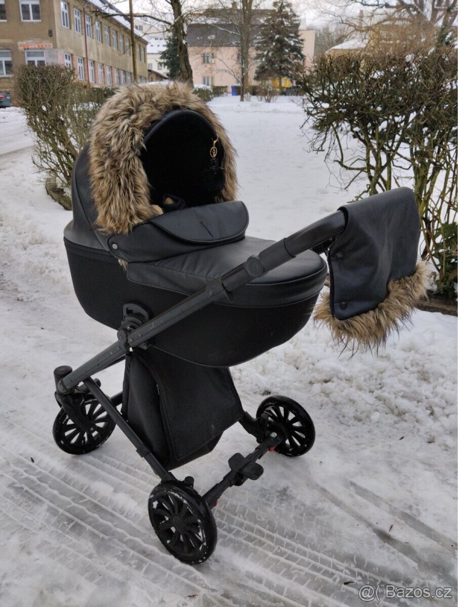 Prodám zachovali Kočárek značky Anex Croos Kožený 2 kombinovaný viz foto .Cena 3500kč