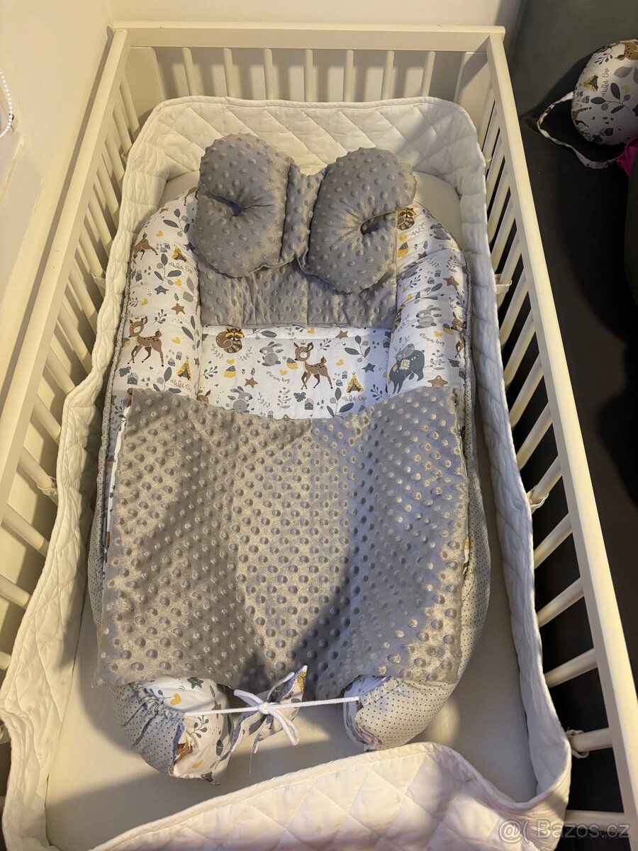Dětská postýlka - [26.4. 2026]Prodám dřevěnou polohovatelnou postýlku s matrací, polštářkovými mantinely a povlečením. Rozměr: 120x80