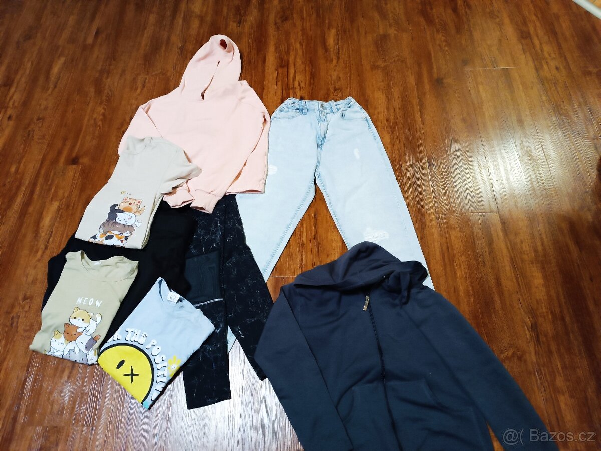 Oblečení pro holčičku vel. 104/110 - [21.4. 2026]Sako, 2 x rifle, mikina, svetr, 2 x tričko s dlouhým rukávem, tílko, 4 x šaty.