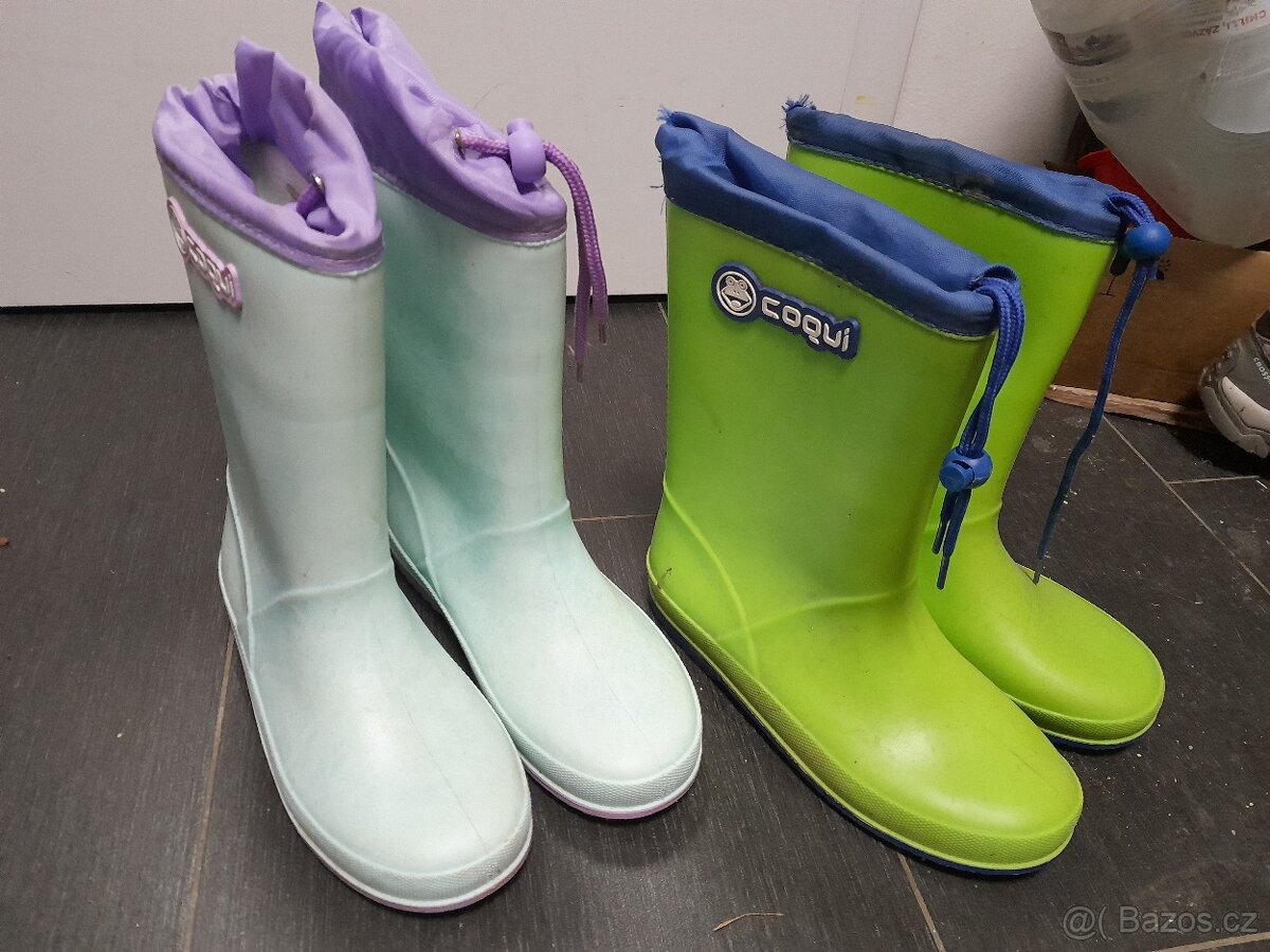Prodám gumáky Coqui Rainy Collar vel.35 (23,5cm) v modro-zelené nebo fialovo-modrounké barvě.