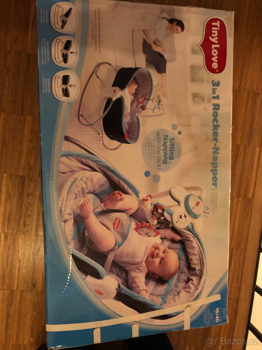 Tiny Love multifunkcni houpaci lehatko s funkci zidlicky 3 v 1. Lze pozits jako lehatko, houpaci lehatko s funkci zidlicky. Soucasti je hudebni kolotoc s privesky. Lehatko je v dobrě stavu po 2 detech.