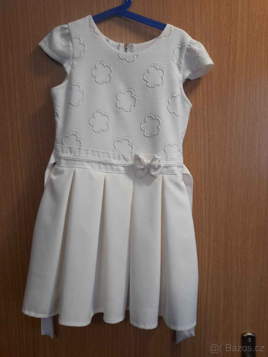 Krásné dívčí bohaté šatičky - [28.3. 2026]Nabízím úžasné dívčí šatičky bílé barvy s několika spodničkami. Jsou opravdu hodně bohaté. Vzadu na zip a stužka na zavázání. Horní část šatů zdobená krajkou a drobnými bílými flitry. Šatičky skvěle padnou. Velikost 122, využity jednou na svatbě a je ...