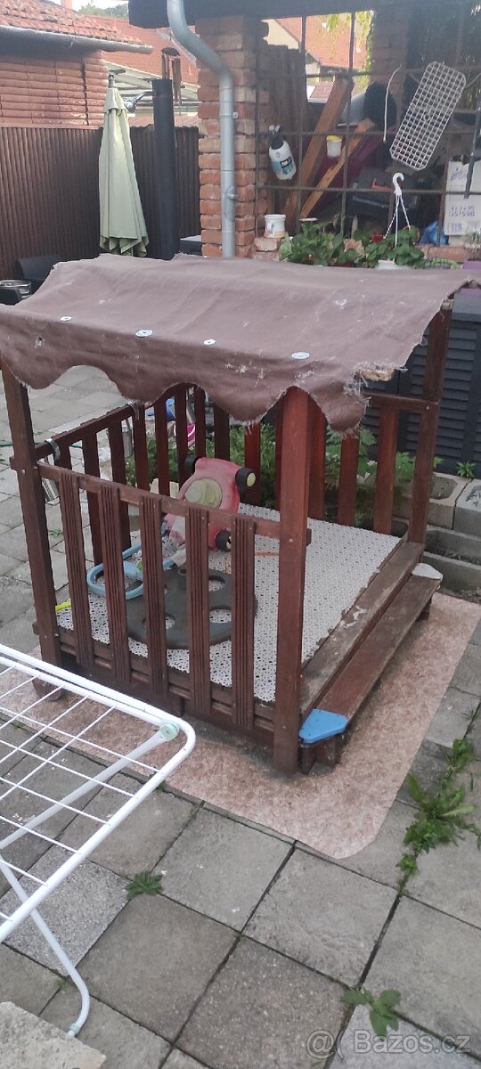 Dětský domeček, pískoviště, pergola, stánek.... Použité ale funkční, trochu lásky by si to zasloužilo viz foto