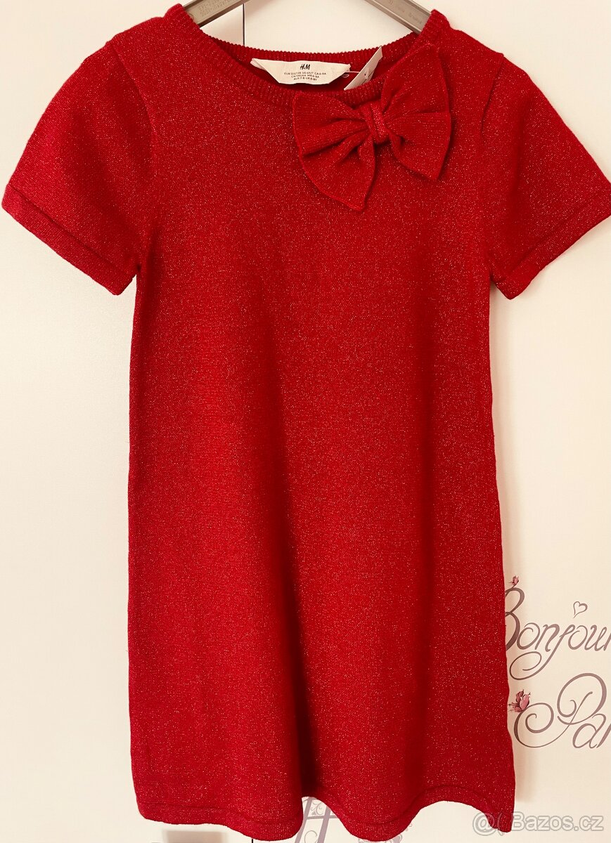 Slavnostní, červené, lehce třpytivé šaty pro malé slečny.