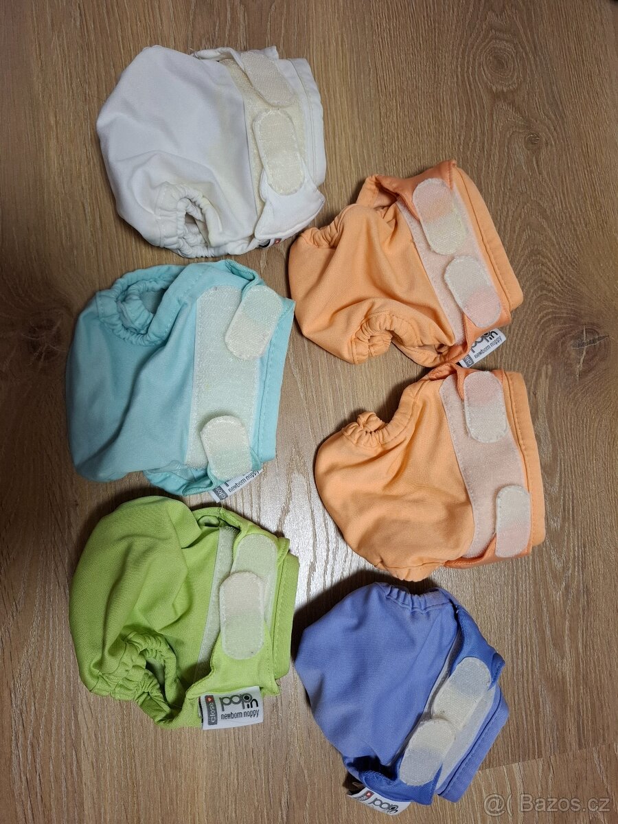 Svrchní kalhotky značky Pop In 6 ks, mix barev, velikost na novorozence. Kupované z druhé ruky, nakonec jsem je ani nevyužila. PUL se zdá být v pořádku, ale nezkoušela jsem. Bílé mají flíček. Cena je za všechny
