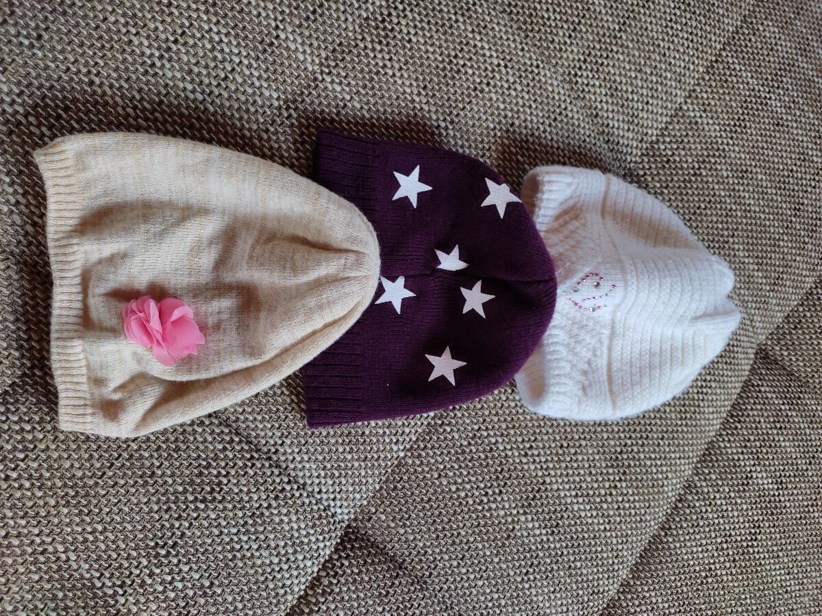 Nabízím tři čepice pro holčičku ve věku cca 1-3 roky. Nošené. Bílá je teplá na zimu, ostatní dvě spíše na jaro-podzim.