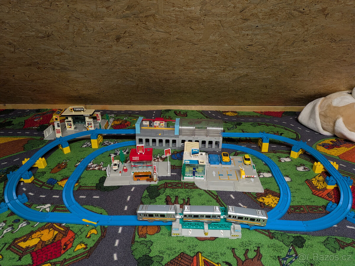 Prodám dráhu/sadu TOMICA. Obsahuje různé části - okruh s metrem, benzinku, autoservis, pizzerii, figurky, autíčka, další doplňky. Je toho plná krabice, funkční.