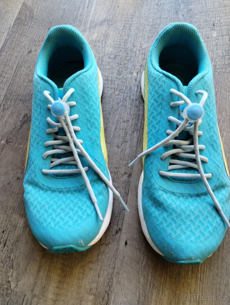 Prodám tenisky, vel. 37, délka stélky 23 cm. Lehce škrtlé na špičce, viz. foto, gumové stahovací tkaničky. Prosím preferuji osobní odběr.