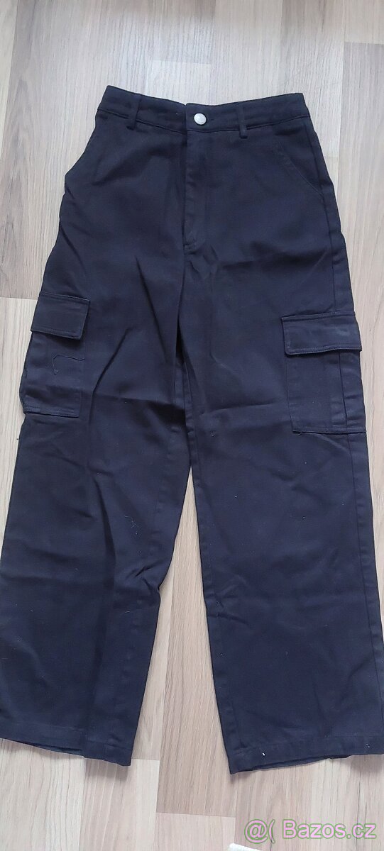 Prodám černé kalhoty, vel. petite xxs, kapsové, širší nohavice. Jako nové. Celk.délka 90cm, pas 30cm.