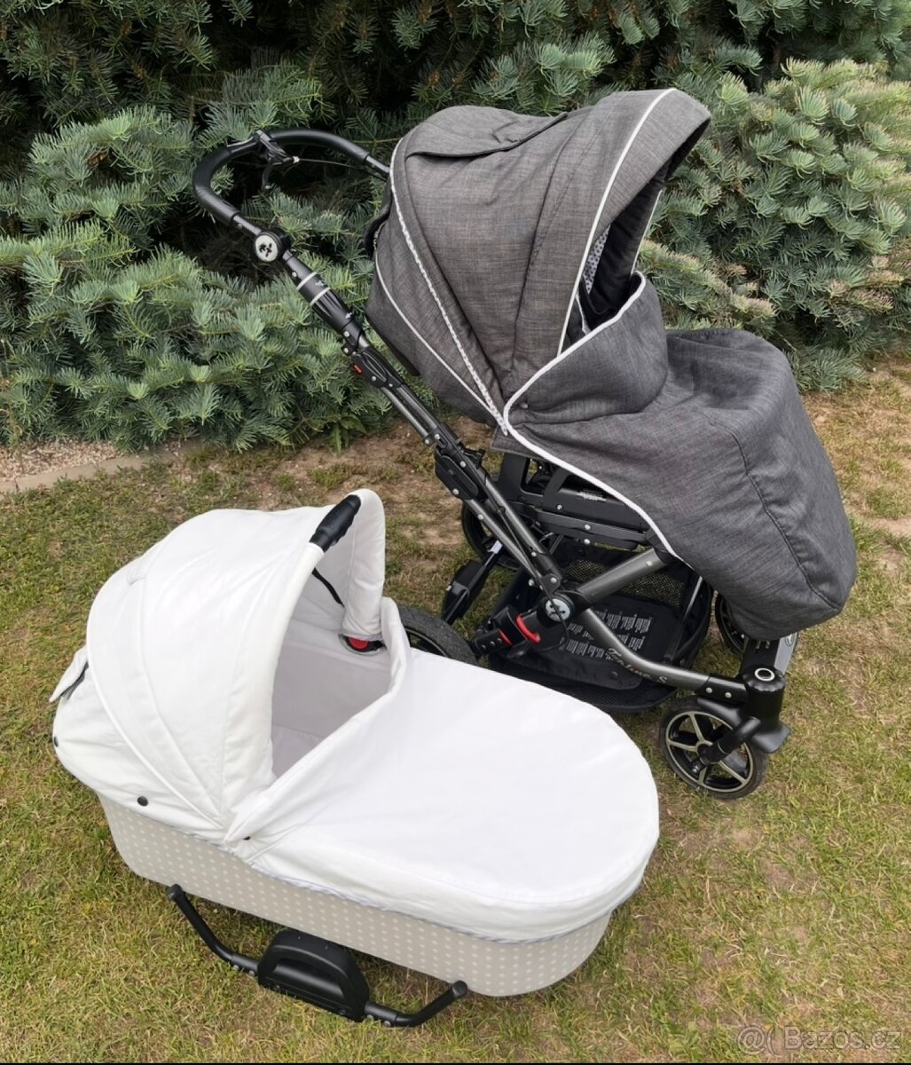 Kočárek dvoukombinace - [4.4. 2026]Kočárek Hartan, dvoukombinace. Korba se dá otáčet je odnímatelná, místo korby se udělá golfáč, který je také otáčecí. Kočárek má tlumiče. Je ideální do hor na turistiku i do města. Má dvě brzdy - ruční a nožní. Super na brusle. Dále má pláštěnku a ta ...