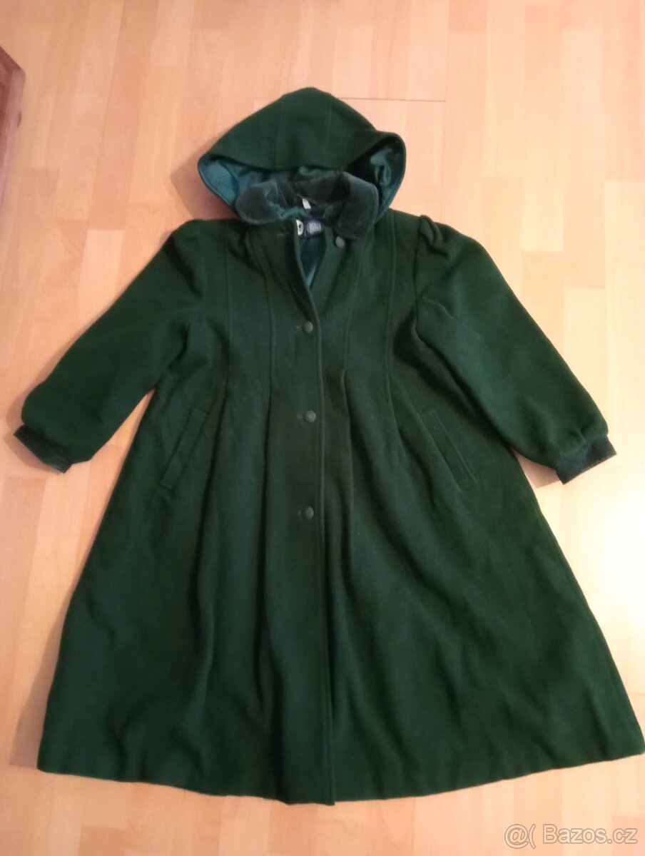 Prodám hezký dívčí kabátek v tmavě zelené barvě, s kapsami a odepínací kapucí, vel.146. Velmi praktický.