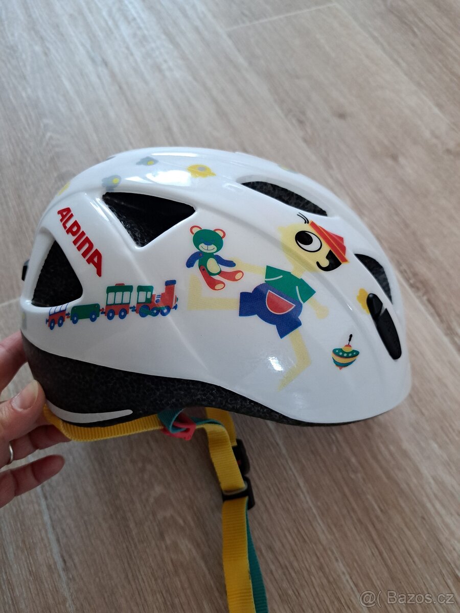 Byla kupovaná v létě 2024, obvod hlavy 47-51 cm. Používaná pouze v sedačce na dospělém kole, takže žádné škrábance. Pouze na jednom popruhu lehce špinavá (zřejmě od řetězu, že na něj dcera sáhla)