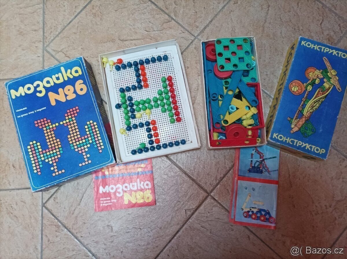 Retro stavebnice Mozaika K-2 KZ Semily - [15.4. 2026]Stará mozaika od výrobce KZ Semily, bez původní krabice. Předmětem prodeje je pouze to, co je na foto: 6 šedých plastových mřížek, spojovací kolečka, která umožňují vytvořit větší plochu na stavění, drobné barevné dílky ke skládání obrázků a návod v ...