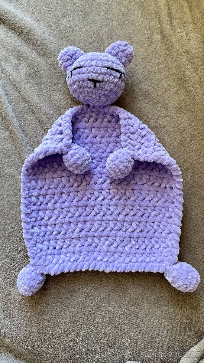 Muchláček háčkovaný - [25.3. 2026]Ručně háčkovaný muchláček-usínáček medvídek z hebké žinylkové příze (certifikované) bezpečnostni oči i čumáček, vel. cca 30 cm, pro sladké sny Vašeho miminka. Zasílám pres Zásilkovnu.