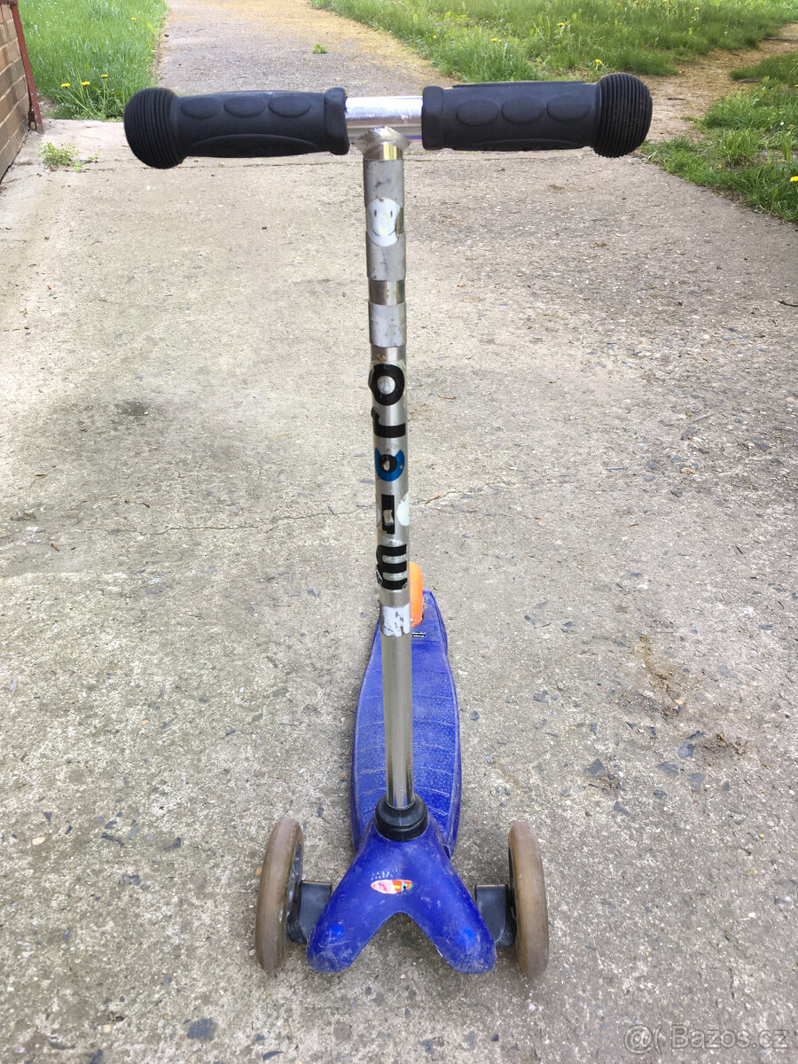 Kolobezka Micro Mini classic - [27.4. 2026]Kolobezka uz má hodně za sebou, ale velmi kvalitní, stále velmi dobře jezdí, řídí se náklonem. Velikost od země po řidítka 66cm. Lehká. Tyč se dá vyjmout a koloběžka tak nezabere moc místa. Prasklina jízdě nevadí.