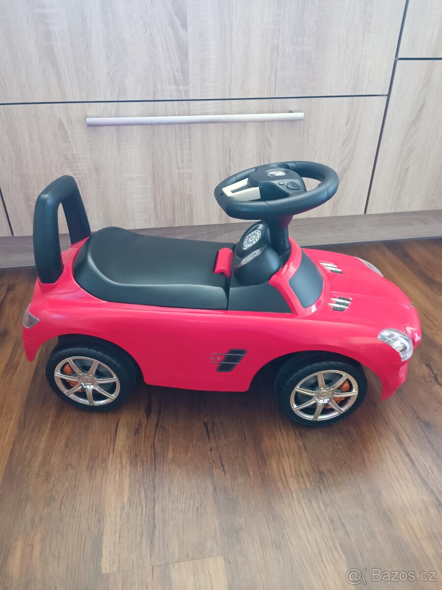 Odrážedlo má odolnou kovovou konstrukci a je stabilní i v zatáčkách, jednoduché ovládání předních kol pomocí volantu. Vozítko má sedačku ve výšce 26 cm, díky pogumovaným kolů ...