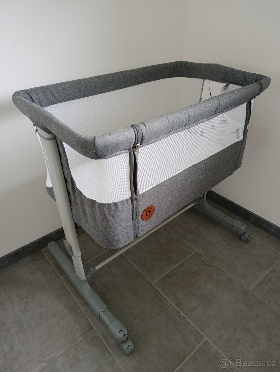 Rošt postýlky jde umístit do 3 výšek. Lze odstranit jedna bočnice (a postýlku mít třeba přiraženou k posteli pro větší pohodlí maminky a miminka).