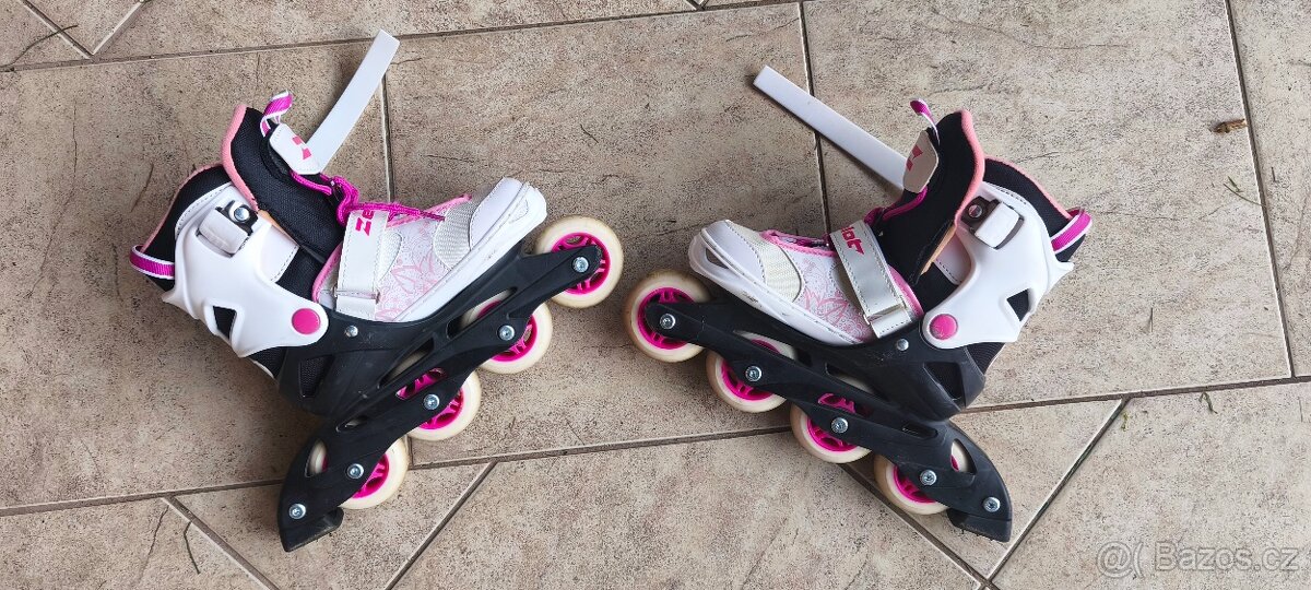 Prodám dívčí inline brusle s nastavitelnou velikostí 29-33. Pěkný stav kupováno nové po jednom dítěti. Pouze osobní odběr.
