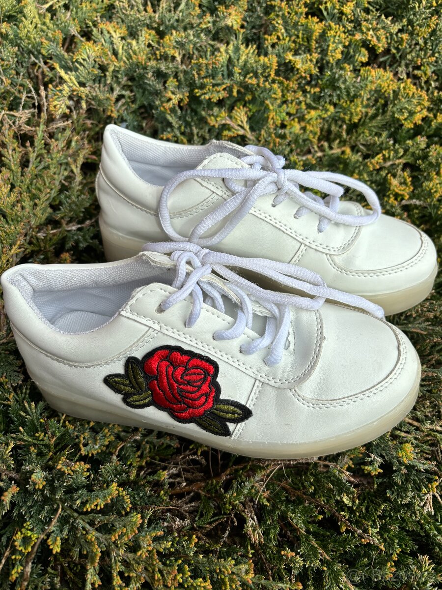 Svítící tenisky - bohužel se nám již nepodařilo nabít. Třeba šikovný rodič opraví. Takže prodávám jako klasické tenisky. Stélka cca 20,5cm.