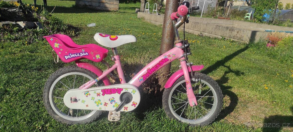 Prodám dětské, růžové kolo, velikost 14 (nejspíš), dcera na něm jezdila ve 4 letech. V dobrém stavu, u zadního nosiče chybí šroubek a je u šroubku naprasklý.