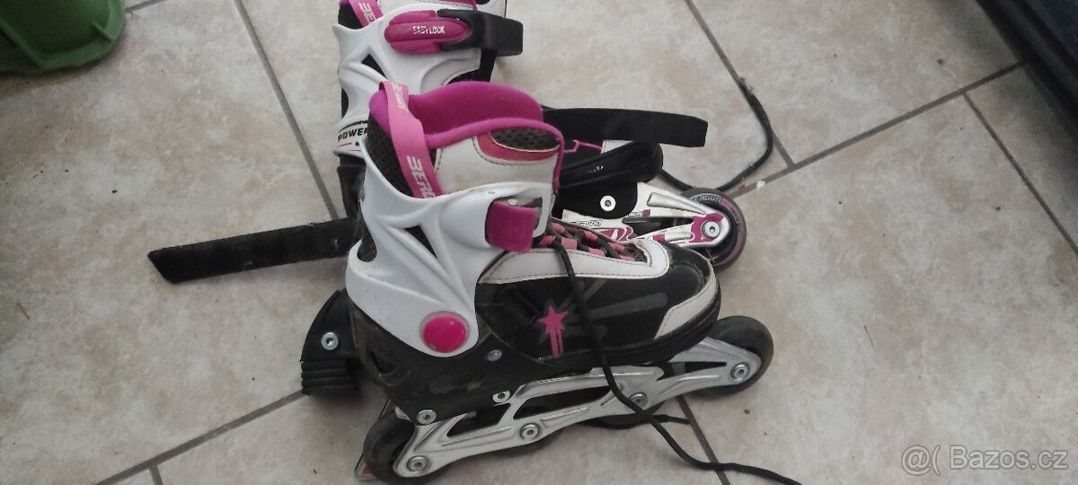 Prodám dívčí brusle ve velmi dobrém stavu, nastavitelné na 4 velikosti ( 33-36).